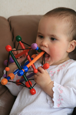 My #3 god daughter Tara has just turned one (her big brother Zackary is almost three). She liked me and my present (a colourful, squashy and very suckable thingie) was one of the favs. Cool fairy godmother!