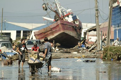 Here are some more photos http://www.stuff.co.nz/world/americas/3387185/Tsunami-quake-kill-350-in-Chile-town showing collapsed roadways and bridges, one huge building split in the middle with both sides on a 45deg angle away from each other, people searching the rubble….