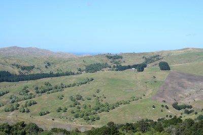 And I liked this one – there were three of these signs as you drive from the top of the ridge to the beach, which you can see down in the background. And I’ll throw in one of the beach at the bottom too. Can’t show you the photo of the farmer – you’ll have to wait til the next issue of the Hawke’s Bay Regional Council’s Spotlight newsletter is out!