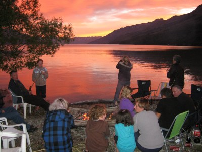 Playing Life or Monopoly with the kids, Skip-Bo (card game), sitting on the deck reading (Thomas with a sneaky eye on the Ashes tests on the TV), playing car cricket or Eye Spy, trips on the boat either with biscuit in full flight or lures trailing lazily away behind, walks down the lake… or sitting watching the sunset with a fishing rod in one hand and a glass of wine in the other. Perfect.